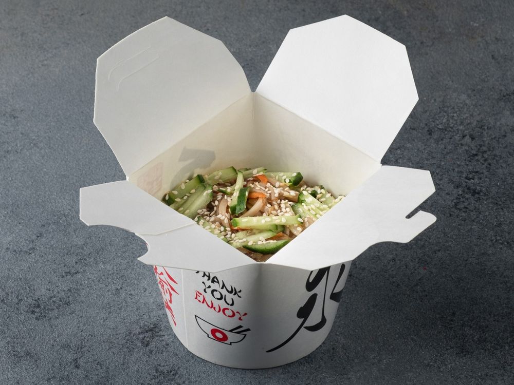 Лапша удон, морковь, перец сладкий, свежий огурец, лук, капуста, кунжут, соус терияки