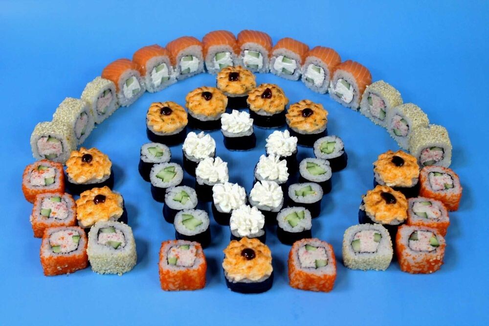 Филадельфия классик, Калифорния в масаго, Калифорния в кунжуте, Джон, Магистр, мини-ролл с огурцом, мини-ролл с крабом со сливочным сыром.
