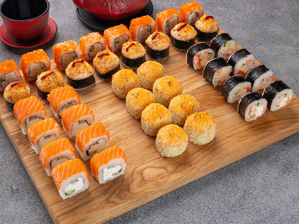 Филадельфия классик, Калифорния в масаго, Запеченный бекон, Ниндзяго, Королевская креветка