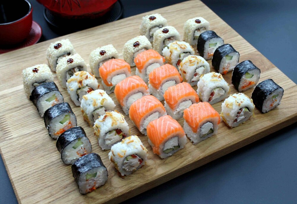 Филадельфия классик, ролл со стрипсами, королевская креветка классик, море угря