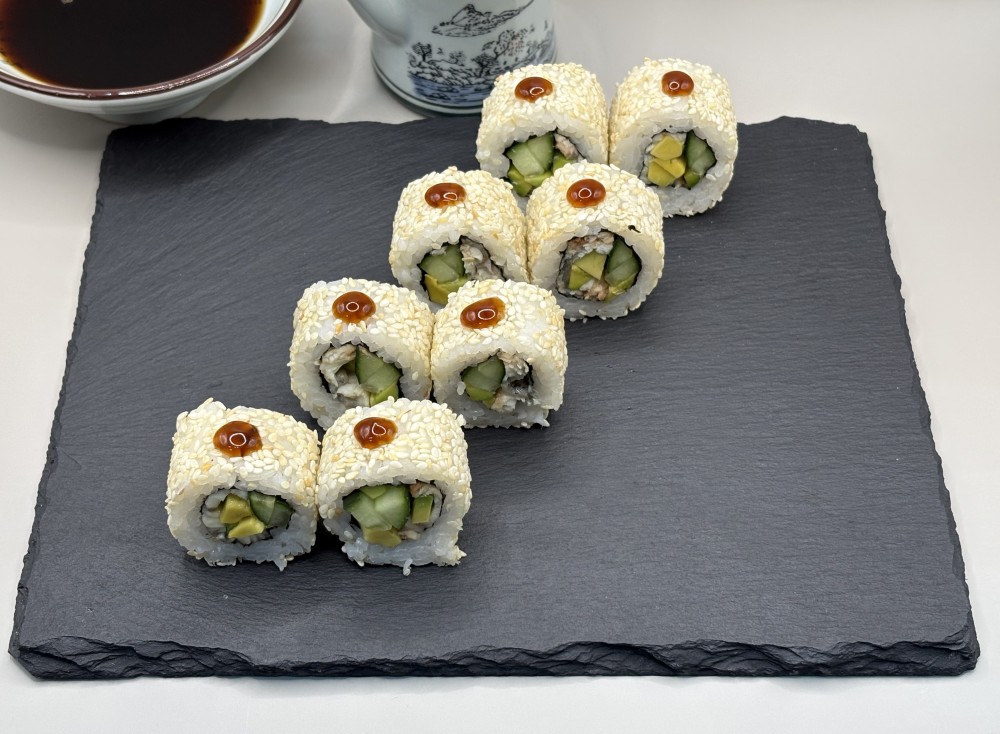 Угорь, авокадо, огурец, соус Унаги, рис, кунжут