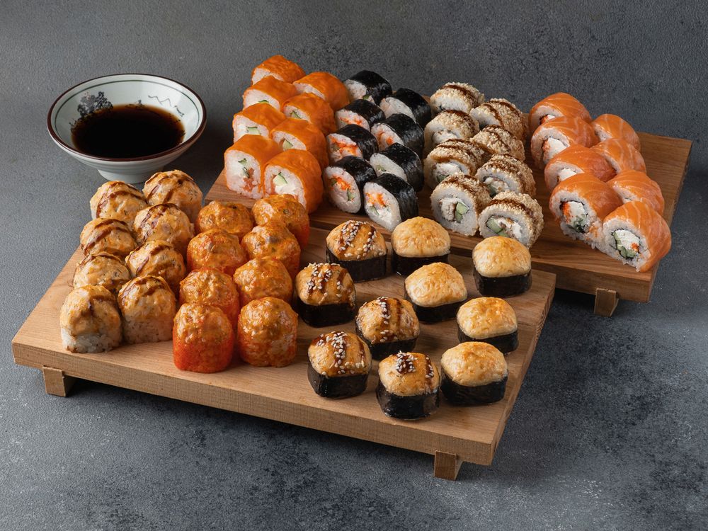 Ролл Филадельфия, Королевская креветка классика, Ролл Маменори, Фудзи, Лосось в Шапке, Магистрат, Джон, Сливочный с угрем