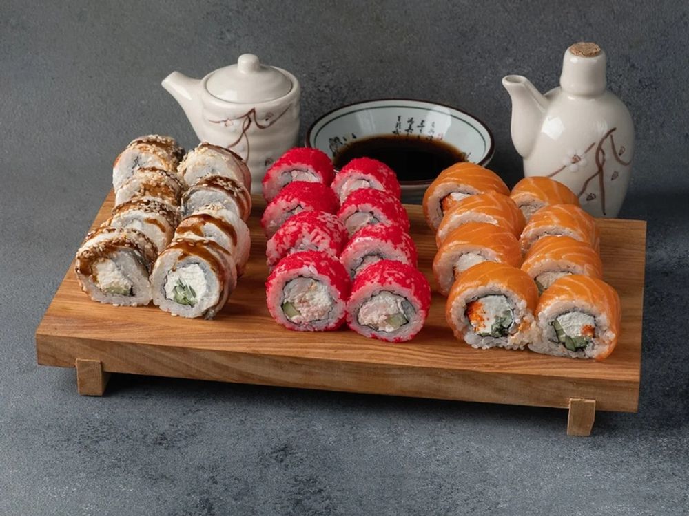 Ролл Филадельфия, ролл с тигровой креветкой, ролл Филадельфия в угре