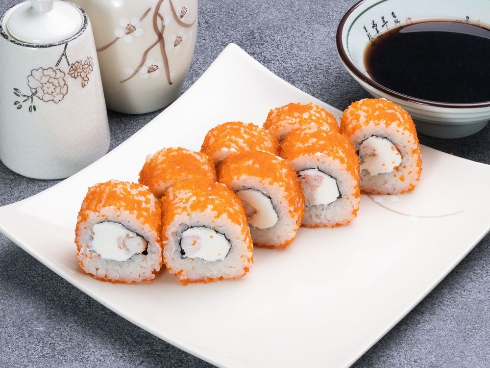 Рис, нори, сливочный сыр, масаго, тигровая креветка